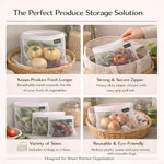 - STRONG ZIPPER WITH DURABLE STITCHING: Each vegetable storage bag features a smooth, sturdy zipper closure to prevent spills and maintain freshness. Reinforced stitching and quality mesh fabric ensure long-lasting daily use in your fridge.